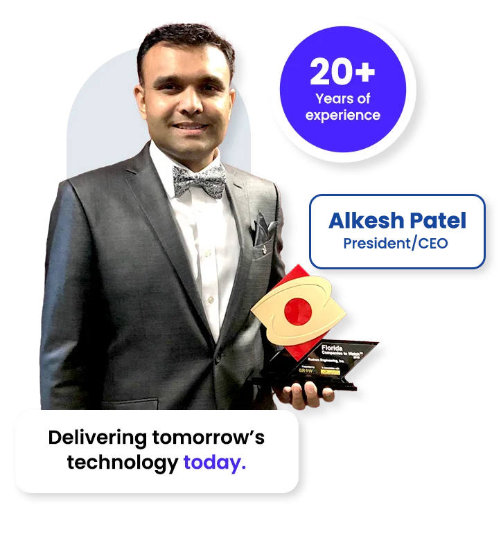 The founder of Rudram Engineering, Inc., Mr. Patel, has over 18 years of experience in Systems Engineering and Software Development. He has worked with major engineering firms such as Raytheon and GE, delivering excellence in Defense and Aerospace Systems Engineering. His specialties include but are not limited to multifaceted soldier-worn electronics and other mobile soldier systems.